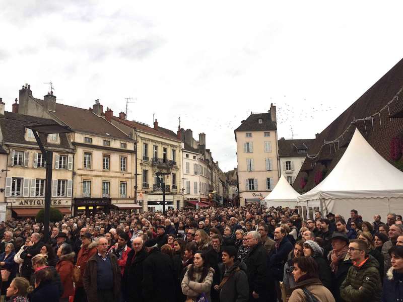 各地民众聚集伯恩市,在大荧幕前观看拍卖会(图片来源:chateaudepommard.com)